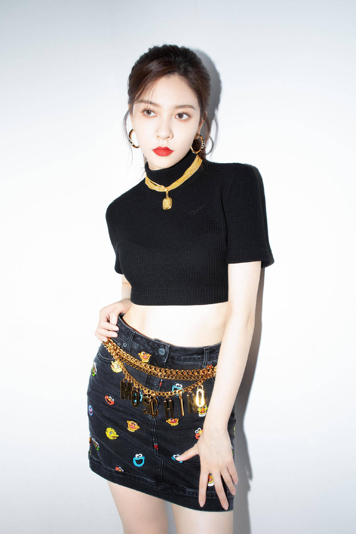 宋妍霏的身材保持的是一等一的好,所以在日常进行穿搭的时候,她很喜欢露脐装。这件高领露脐装适度融入了“季节碰撞”的元素,高领设计对脖颈线条有十足的保暖作用,而露脐却能露出小蛮腰,搭配半身裙就颇有女人味,适合身材好的女性。