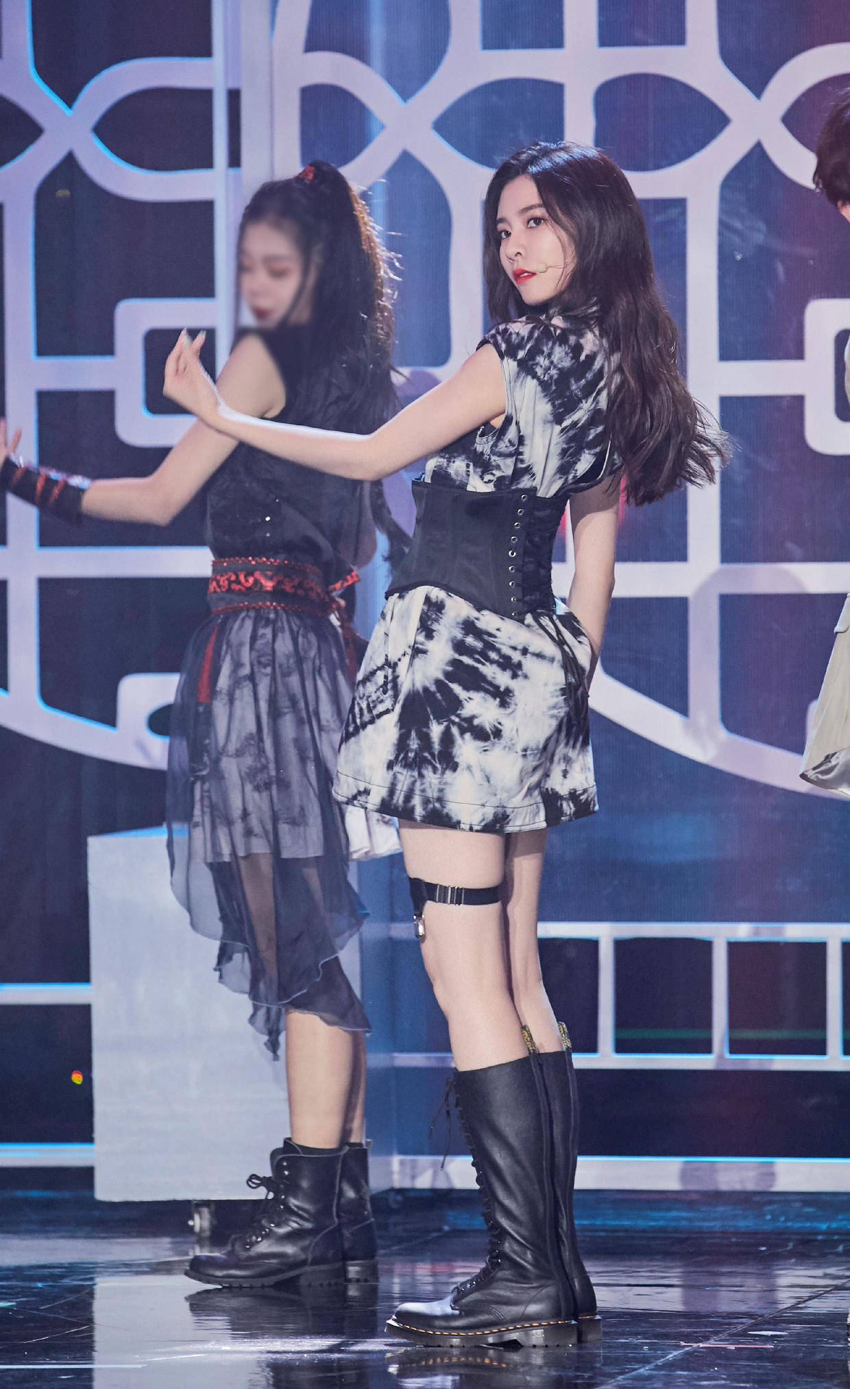连衣裙最大的亮点在于腰部的束腰设计,它设置得很宽,这就能很好地勾勒出宋妍霏不盈一握的小蛮腰,让她的身材得以淋漓尽致地彰显,同时它也会起到很好的塑形作用,这样一来,就算你腹部有些赘肉也不用担心了。