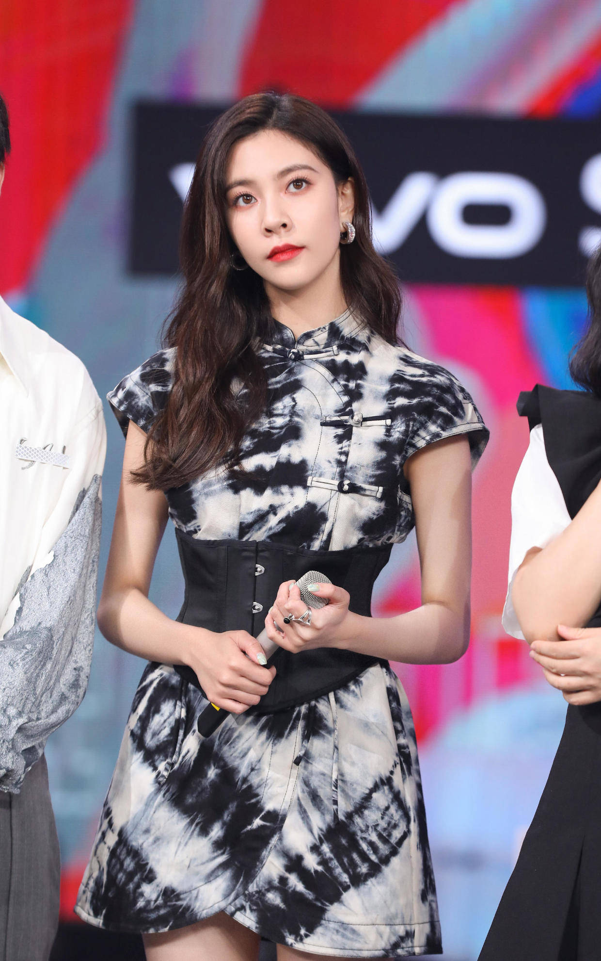 有不少人觉得旗袍是适合“奶奶辈”的服装,很容易穿出土俗的气质。其实旗袍最富有东方女子的韵味,而且能秀出穿搭者的S型曲线,如果尝试改良式的旗袍,那就更有国潮风范了,就像这次宋妍霏的亮相一样,她身穿黑白晕染风改良旗袍亮相,好身材得以淋漓尽致地彰显,却丝毫不显老气,很值得大家借鉴。
