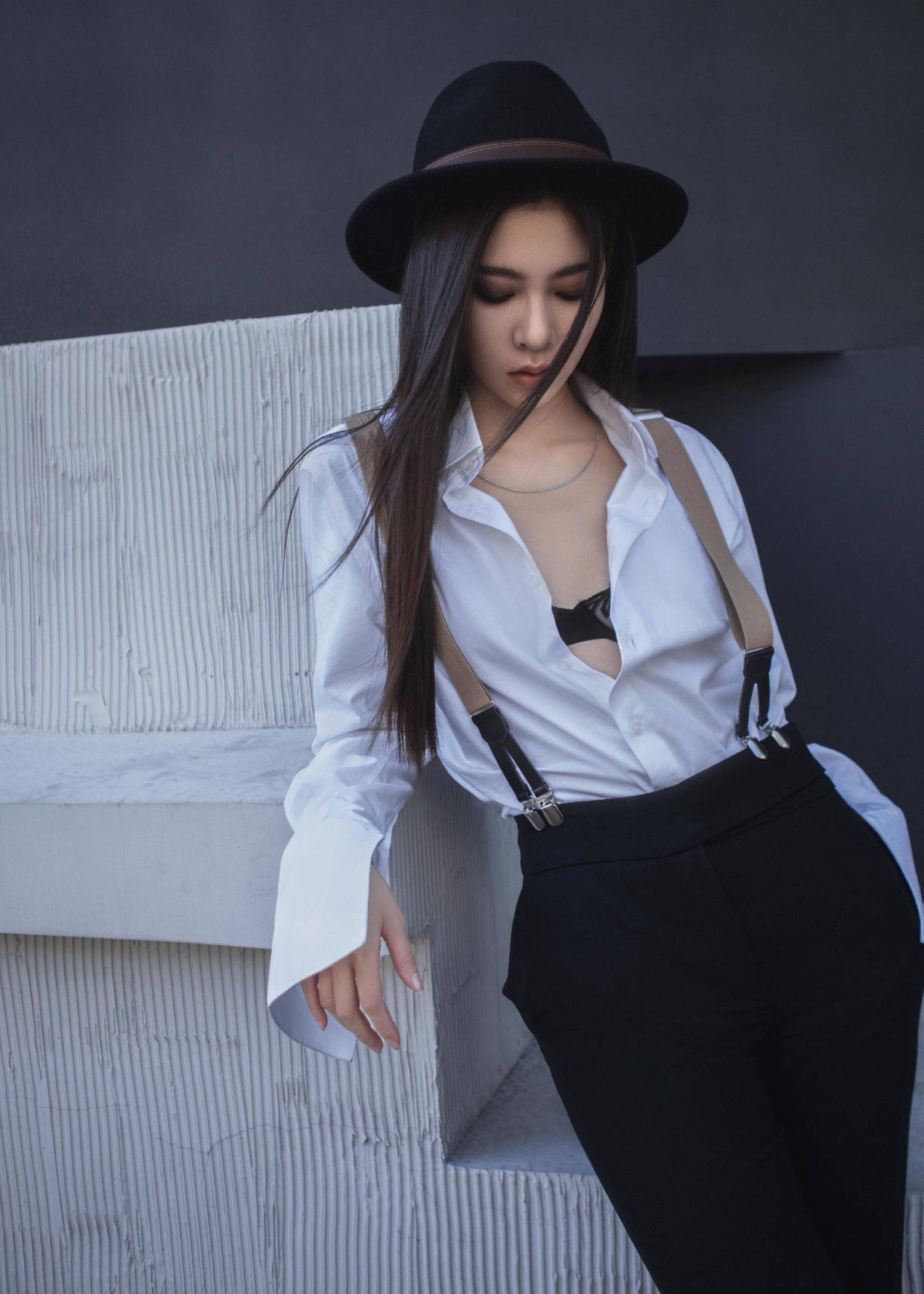 宋妍霏比较喜欢将抹胸当作内搭,其实抹胸本质与露脐装没什么不同,都对身材有很高的要求,不过前者暴露的地方会更多,这就比较考验你的心态,如果你不想穿得太露,那搭配一件外套就刚好能起到调和的作用。
